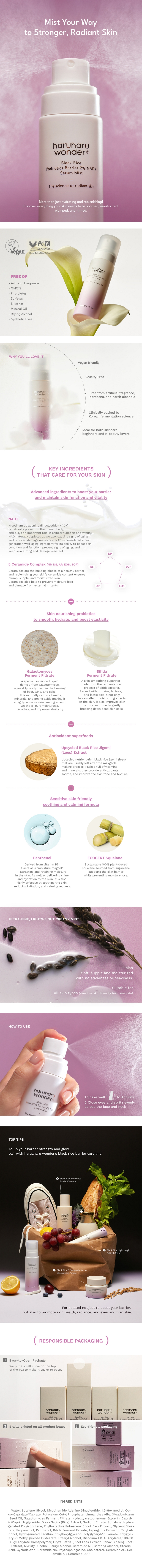 Toto multifunkční mlhové sérum kombinuje hloubkovou regeneraci, ochranu kožní bariéry a pokročilou péči proti stárnutí. Unikátní složení s technologií fermentované černé rýže a moderními aktivními látkami poskytuje pleti okamžitou úlevu, hydrataci a posílení imunity pokožky kdykoliv během dne. Na rozdíl od běžných pleťových vod má tato mlha bohatou mléčnou texturu, která se rychle vstřebává a nezanechává lepivý film.