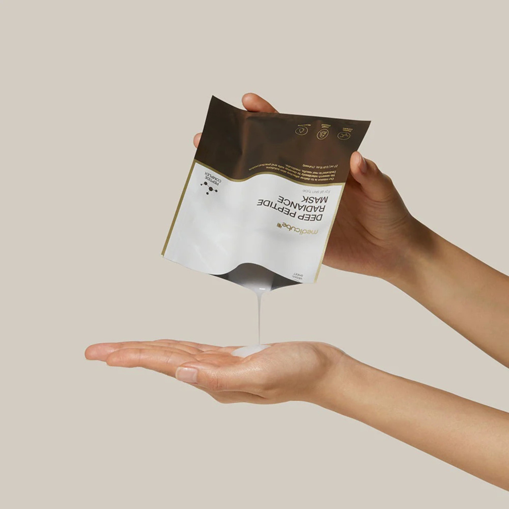 Medicube Deep Peptide Radiance Mask je napuštěna vysoce koncentrovaným sérem s obsahem peptidů, které cíleně působí na strukturu pokožky.